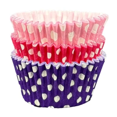 MIXED DOTTY CUPCAKE CASES - This pack contains approximately 12 purple polkadot cases, 12 pink polkadot cases and 12 cerise polkadot cases measuring 51mm x 38mm, made from 65GSM Greaseproof paper in a handy tub DAZZLE AT EVERY CELEBRATION WITH SWEET AND SAVOURY CUPCAKES - Impress your guests at birthdays, parties, wedding, christenings and anniversary gatherings with a mixed pack cupcake cases CELEBRATE IN STYLE WITH VIBRANT COLOUR SELECTION Make your cupcakes pop with a wide range of colours available, perfectly suiting any party theme NON-TOXIC, GREASEPROOF CUPCAKE CASES Our disposable cupcake cases are non-toxic, greaseproof and designed to keep your cupcakes looking fresh and delicious, with colours that do not fade 65GSM GREASEPROOF PAPER - Make your sweet and savoury cupcakes pop with a wide range of colours available, perfectly suiting any party theme