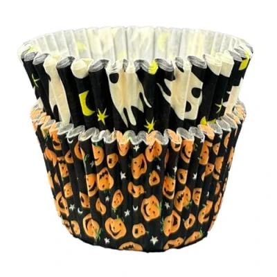 Scrumptious! Cupcake Cases Halloween Ghost and Pumpkin 36PC 65GSM 51mm x 38mm Greaseproof Paper Baking Great for Birthday Spooky Party Muffins, Cakes Bakes