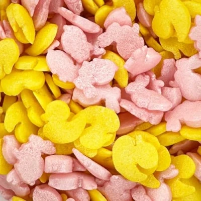 SHIMMERING DESIGN - A beautiful mix of shimmer duck and bunny shaped sprinkles. Elevate your Easter treats with this pretty combination. BRIGHT SPRING COLOURS - Our Easter decorations feature charming yellow duck and pink bunny shapes, ensuring your cakes stand out beautifully. VERSATILE PRODUCT - An excellent choice for embellishing cupcakes, cakes, cookies, macarons, biscuits, doughnuts and cake drip creations. UK HAND PACKAGED - Our UK-based headquarters meticulously hand-packages each 30g pouch of easter sprinkles, ensuring that every little bag is carefully GET CREATIVE - Why not make your cake unique by adding other cake sprinkles from our range to make your own masterpiece.