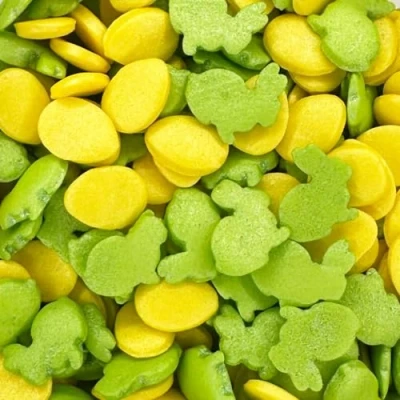 SHIMMERING DESIGN - A beautiful mix of shimmer eggs and bunny shaped sprinkles. Elevate your Easter treats with this pretty combination.. BRIGHT SPRING COLOURS - Our Easter decorations feature charming yellow eggs and green bunny shapes, ensuring your cakes stand out beautifully. VERSATILE PRODUCT - An excellent choice for embellishing cupcakes, cakes, cookies, macarons, biscuits, doughnuts and cake drip creations. UK HAND PACKAGED - Our UK-based headquarters meticulously hand-packages each 30g pouch of easter sprinkles, ensuring that every little bag is carefully GET CREATIVE - Why not make your cake unique by adding other cake sprinkles from our range to make your own masterpiece.