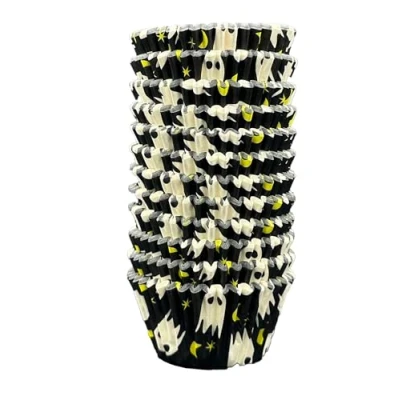 HALLOWEEN THEMED MUFFIN CUPCAKE CASES - Add some spooky Ghostly inspiration to your baked and party goods. The perfect baking case for any Halloween party, Spooky desserts or themed event, like a Harry Potter Wizard party MEASUREMENTS - 51mm base x 38mm Height. 65gsm sustainable greaseproof paper ALL OCCASIONS - Perfect for adding a touch of halloween spook to your cakes and birthday celebrations with seasonal themes. VERSATILE PRODUCT - These cheerful Halloween cases are an excellent choice for all muffins, cakes and bakes. USAGE - You can bake your cakes and treats in these cases