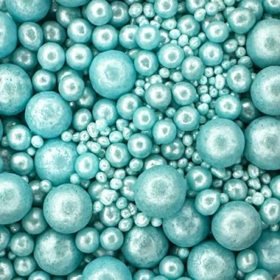PEARL MIX - A beautiful mix of glimmer turquoise pearls. Create a dramatic encrusted effect on large cakes and sprinkle on cupcakes for a decadent decoration. MIXED SIZES - This 30g pouch includes various-sized sprinkles including 100's and 1000's and 2mm-7mm pearls. ALL OCCASIONS - Perfect for adding a touch of enchantment to your cakes. Perfect for weddings, christenings, anniversaries, baby showers and birthdays. SHIMMERING DESIGN - High shimmer pearls in this lovely mix give a stunning twinkly finish. VERSATILE PRODUCT - These exquisite sprinkles are an excellent choice for embellishing cupcakes, cakes, cookies, macarons, biscuits, and doughnuts. Elevate the allure of your cake drip creations by adding these gorgeous sprinkles as a finishing touch.