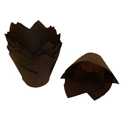 Scrumptious! Scrumptious - 50PC Greaseproof Paper Muffin Tulip Cases for Baking - Chocolate Brown - Perfect for Wedding, Birthday and Anniversary Party Cakes and Bakes, 5601Sc
