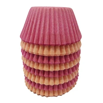 25mm height 30mm base Won't fade when baked Made in the United Kingdom from sustainable material approx. 120 pink & cerise mixed mini muffin cases