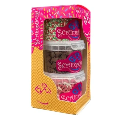 THREE VARIETIES - red and white candy cane sugar shapes, matt red, white and green hundreds and thousands or non pareills and gingerbread man sugar shapes. All presented in a pretty gift box TRADITIONAL THEME - Perfect party decorations for adding traditional Christmas cheer to your cakes. Perfect for all occasions and events. Enhance your Xmas cakes and bakes MIXED SPRINKLES - These carefully selected sprinkles offer a combination of finishes, bringing different colours and textures along a common theme to your winter and Christmas creations A GREAT GIFT - Our Scrumptious! Trios are a great gift for bakers! This unique present will delight any baking fan of any age HAND PACKAGED - Our UK-based headquarters meticulously hand-packages each Scrumptious! pot, ensuring that every little tub is carefully selected just for you, Manufacturer: Truly (UK) Ltd