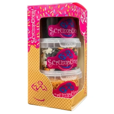 THREE VARIETIES - Matt black 100s and 1000s or non pareills, Halloween shapes (shimmer pumpkins, matt white ghosts and matt black bats) and Matt orange sugar strands. All presented in a pretty gift box HALLOWEEN THEME - Perfect party decorations for adding a touch of spookiness to your cakes. Perfect for all occasions and events. Enhance your monster cakes and bakes MIXED SPRINKES - These carefully selected sprinkles offer a combination of finishes, bringing different colours and textures along a common theme to your creations A GREAT GIFT - Our Scrumptious! Trios are a great gift for bakers! This unique present will delight any baking fan of any age HAND PACKAGED - Our UK-based headquarters meticulously hand-packages each Scrumptious! pot, ensuring that every little tub is carefully selected just for you, Manufacturer: Truly (UK) Ltd