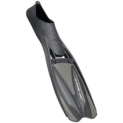 Full foot version of powerful jet sports Large blade design 3 composite construction material Drag reducing openings to decrease drag on both up and down strokes Ergonomic foot space