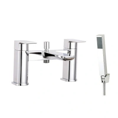 The Scudo Muro Chrome Mixer Tap & Shower Set, a deck-mounted fixture designed to blend functionality with modern aesthetics. Crafted from solid brass with a polished chrome finish, it offers durability and resistance to tarnishing and corrosion. WRAS approved, indicating compliance with rigorous water regulation standards.The Muro Mixer Tap & Shower Set features lever handles for easy control and requires two tap holes for installation. It's compatible with water pressures ranging from 0.5 to 3 bar, ensuring versatility across various plumbing systems. Features & Benefits: Scudo Muro Chrome Mixer Tap & Shower Set, Flow Rate of 7.5l/min at 0.2 Bar and 39.5l/min at 3 Bar, Made from Durable Brass, Resists rust and maintains its shine. Scudo Muro Chrome Mixer Tap & Shower Set Brass
