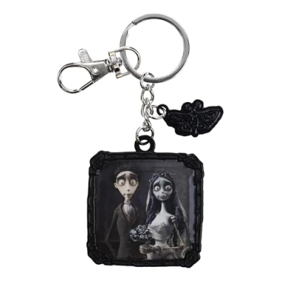 This distinctive square metal key ring features an image of Victor and Emily framed in a detailed design that reflects the dark and charming style of "The Corpse Bride". Ideal for collectors, this keychain comes with the logo engraved on the reverse, ensuring you carry an officially licensed and high quality product with you. This accessory is not only a statement of style, but also a tribute to one of Tim Burton's most beloved films.