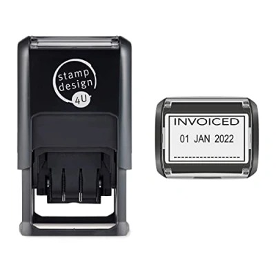 SD4U Word and Date Stamp Self Inking INVOICED Changeable in Black Ink