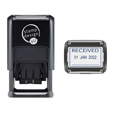 SD4U Word and Date Stamp Self Inking Received Changeable in Blue Ink