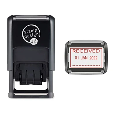 SD4U Word and Date Stamp Self Inking Received Changeable in Red Ink
