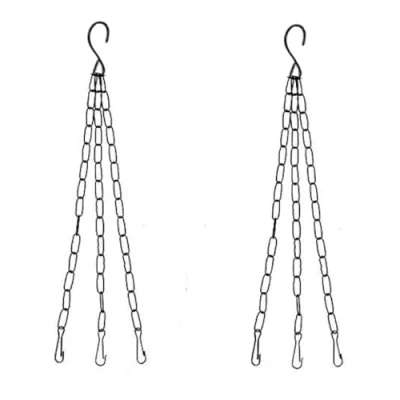 Package Contents: 2 Pc Iron Chain for Hnaging Basket, 18 Inch Long Versatile Design: With a length of 18 inches, these chains are suitable for hanging various types of planters, flower pots, and baskets. They provide ample support for your plants while adding an attractive decorative element to your space. These chainEasy Installation: The chains come with hooks or connectors that make them easy to attach to your planters and hang from hooks, brackets, or other mounting points. The simple installation process allows you to quickly set up your hanging baskets without any hassle.s are made of high-quality metal, smooth surface, strong and durable, not easy to deform, not easy to rust. Indoor and Outdoor Use: Whether you want to beautify your outdoor garden or add greenery to your indoor living spaces, these hanging basket chains are versatile enough to be used in both environments. They can be hung from ceilings, walls, fences, or pergolas to create stunning visual displays. Multipack: The package includes two hanging basket chains, providing you with flexibility in arranging your plants and creating visually appealing arrangements. You can use them individually or pair them together for a cohesive look.