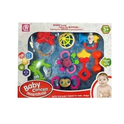 FUN AND ENGAGING TOY: The set includes a diverse collection of rattles, each with unique designs, sounds, and textures. Each rattle in the set is designed to produce different sounds and movements, which capture the baby's attention and encourage interactive play. The diverse shapes and noises ensure that babies remain engaged, curious, and delighted during playtime. PROMOTE MOTOR SKILLS: The Baby Rattle Set is designed to support the development of fine and gross motor skills in infants. As babies grasp, shake, and explore the various rattles, they improve their hand-eye coordination and dexterity. The different shapes and sizes of the rattles encourage babies to use various grips and motions, aiding in the development of their motor skills. DURABLE CONSTRUCTION AND DESIGN: Made from good-quality materials, this rattle toy set is built to withstand the safe handling and chewing that come with infant play. The durable construction ensures the toys remain intact and functional even after extensive use. Parents can feel confident in the safety and longevity of the product, knowing it is designed to endure the wear and tear of daily play. PORTABLE AND LIGHTWEIGHT: The compact and lightweight design of each rattle makes them easy to carry around, making them perfect for on-the-go entertainment. Whether at home, in the car, or on an outing, parents can conveniently pack the rattles in a diaper bag or stroller to keep their baby amused and engaged. BRIGHT AND COLOURFUL DESIGN: The vibrant colours and fun shapes of the rattles are visually stimulating, attracting babies’ attention and encouraging them to reach out and play. The playful designs also make the rattles appealing to look at and fun to interact with, adding an element of joy to learning and development.