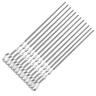 Package Contents: 12 Barbecue Skewers, 38cm long Twist Design Features-The ergonomic twist design flat barbecue sticks prevent food from rotating or moving when flipping over shish kebab skewers on the grill Stainless steel barbecue skewers can be fully rotated so that the food can be evenly heated Quality Construction-Our bbq skewers are made of Food Grade 304 stainless steel, which is reusable and strong, also rust resistant for long term use. kebab skewers metal holds everything in place so the meat and veggies don't move around when you try to flip the skewer on the grill, resulting in beautiful grill marks. Sturdy and Durable-The sticks are thick enough to allow you to add weight without bending or twisting, which is rust-proof, heat-resistant, and corrosion-resistant. Which is comfortable to hold and keep you away from heat source while it is perfect for grilling shrimp, chicken, fruit, vegetable, meat, beef and more. Versatile-Suitable for BBQ, cocktail party, Christmas party, birthday party, family gathering, wedding, grill, fruit grill, cheese, chocolate fountain and many more other occasions., Manufacturer: sdmax