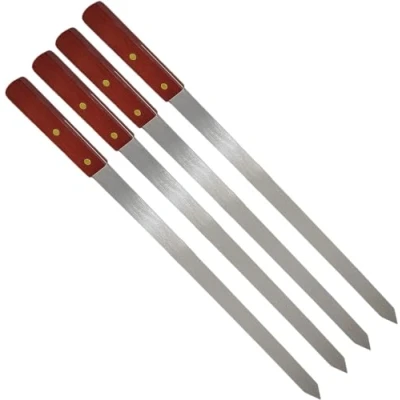 SDMAX Long BBQ Barbecue Skewers, Wooden Handel Set of 2 4 6 8 12 Grilling Kebab Skewers Flat Reusable Metal Skewer Sticks for BBQ, Cocktail, Shish Kabob, Party Essentials, 58CM (Pack 4)
