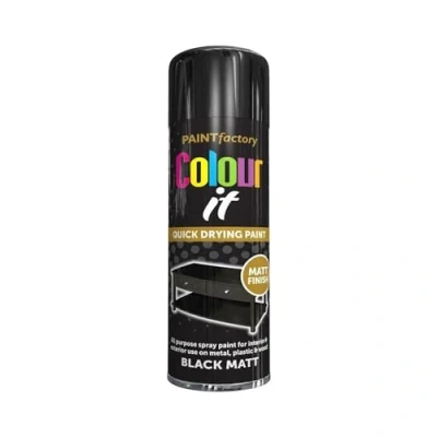 DESIGNED FOR QUICK DRYING: The Colour It Black Spray Paint Matt 250ml is formulated to dry rapidly, allowing you to complete your projects efficiently. This feature makes it a convenient option for both interior and exterior applications, minimizing downtime and letting you enjoy your transformed surfaces sooner. HIGHLY VERSATILE: This spray paint is engineered to adhere seamlessly to a wide range of surfaces, including wood, metal, plastic, and more. Whether you’re revamping furniture, updating decorative items, or refreshing hardware, its versatility ensures compatibility with virtually any project. TRANSFORMS WITH ELEGANCE: The matt black finish offers a sophisticated and modern aesthetic, rejuvenating worn-out furniture and objects with a smooth, classic touch. Perfect for DIY enthusiasts, this spray paint breathes new life into outdated or tired pieces, making them the focal point of any space. OPTIMAL SURFACE PREPARATION FOR BEST RESULTS: For flawless application and long-lasting results, proper surface preparation is essential. Ensure the surface is clean, dry, and free from contaminants like loose paint, mould, mildew, wax, or oil. If wax has been applied previously, thoroughly clean the surface with white spirit to guarantee optimal adhesion. DURABLE AND LONG-LASTING FINISH: Designed to withstand the rigours of daily use and environmental exposure, the matt finish remains resilient over time. Its durable coating resists wear and tear, ensuring your transformed pieces maintain their stunning appearance for years to come., Manufacturer: SDMAX