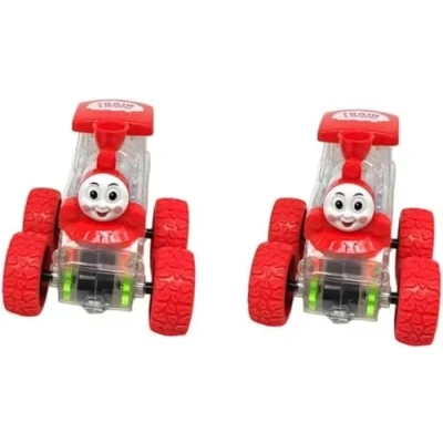 SDMAX Mini Thomas Train, Gear Slide Inertia, Lights, Safe and Durable, 360 Spins Smooth Glides, Wind Up Fun, Hand Eye Coordination, Imaginative Play, Plastic, Red (2 Pcs)