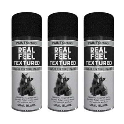 SDMAX Real Feel Textured Coal Black Aerosol Spray, Quick Drying, Stylish And Durable Finish, Indoor Outdoor Use, Easy To Compact Portable, 400ml (3PCS)