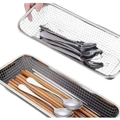 SDMAX Stainless Steel Cutlery Basket With Drainage, For Spoon, Fork, Chopstick Storage, Kitchen Accessory, Utensils Holder, Flatware Organizer, Rectangle (31x12cm)
