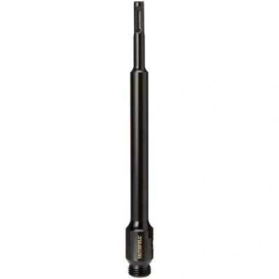 General description This SDS extension adaptor is designed for use with SDS power tools, extending the reach of your SDS drill to make it easier to work in hard-to-reach areas. It is compatible with the Faithfull range of diamond cores and other brands that have a 1/2 inch BSP thread. Technical specifications Size: 10mm x 240mm Thread type: 1/2 inch BSP Material: Metal Compatibility and accessories Compatible with Faithfull diamond cores and other brands with a 1/2 inch BSP thread Not suitable for diamond cores larger than 78mm in diameter, as using larger cores may damage the tool or adaptor Installation Attach the adaptor to the SDS drill's chuck or drive system Ensure it is securely fitted before use Usage Use with diamond cores or other compatible accessories with a 1/2 inch BSP thread Do not exceed the maximum core size of 78mm to prevent damage Other information