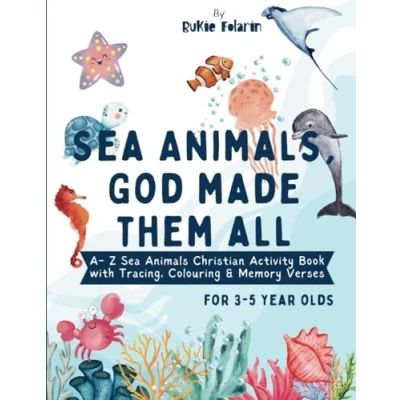 Sea Animals, God Made Them All : A Z Animals Christian Activity Book for 3 5 year olds: My Very First Bible Tracing, Colouring, Memory Verse