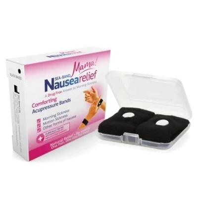 ACUPRESSURE WRISTBANDS: A simple, effective and natural solution to support your pregnancy! Sea-Band Mama! Acupressure Featuring a plastic stud that applies gentle pressure on the P6 or Nei-Kuan acupressure point on each wrist COMFORTABLE, REUSABLE AND MADE IN THE UK: Hand washable and made from a super-comfortable, latex-free combination of nylon and elastane fibres. Sea-Bands can be used over and over again and come with a handy storage box! MADE IN THE UK FOR EXCEPTIONAL QUALITY: Crafted with precision and care in the UK, our product offers unparalleled durability and performance. Every item is manufactured to the highest standards, ensuring long-lasting reliability and excellent craftsmanship HOW TO FIND THE NEI-KUAN ACUPRESSURE POINT: Place your middle 3 fingers on the inside of your wrist, with the edge of the third finger on the wrist crease. The Nei-Kuan point is just under the edge of your index finger HOW TO WEAR: Simply slip a wristband onto each wrist, with the button facing downward over the Nei-Kuan point. The bands work immediately and can be worn whenever you feel nauseous