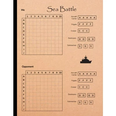 Sea Battle Paper Game: Battleship Game, Activity Book for Children and Adults, Game Grid, Book, Size 8.5"X11", 120 Pages