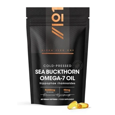Sea Buckthorn Omega 7 Oil 11,550mg 60 Vegan Softgelsc High Strength 90mg Palmitoleic Acid Pure & Potent Hippophae Rhamnoides Supplement Capsules by Alpha01