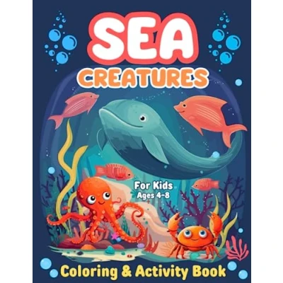 Sea Creatures Coloring and Activity Book for Kids Ages 4 8: Coloring, Dot To Dot, Mazes, Puzzles, Word Search More! (60 Illustrations)
