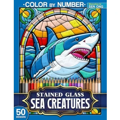 Sea Creatures Stained Glass Color by Number: 50 Marine Designs for a Relaxing Underwater Adventure