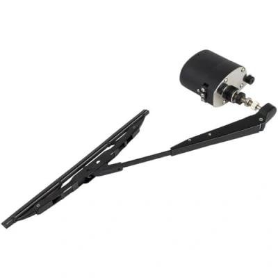 Kit includes a standard frame mount, wiper motor, an adjustable standard wiper arm (11” - 13”) and an 11” curved blade Preset Sweep Angle: 80° 11” curved blade 11" to 13" adjustable standard wiper arm Powder coated aluminum/304 stainless steel construction