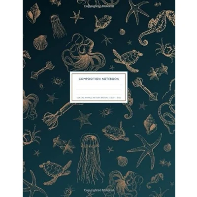 Sea Life Animals Pattern Brown: Ocean Notebook College Ruled With Octopus, Horse, Turtle, Squid And Jellyfish 8.5x11" LARGE 100 Lined Pages
