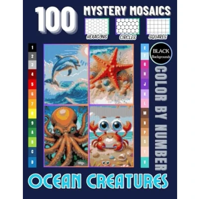 Sea Life Color by Number: 100 Ocean Animal Mosaic Designs with Hexagon, Circle & Square Patterns: A Big Creature Coloring Book for Teens, Adults ... Turtles, Jellyfish, Otters, Seahorses More