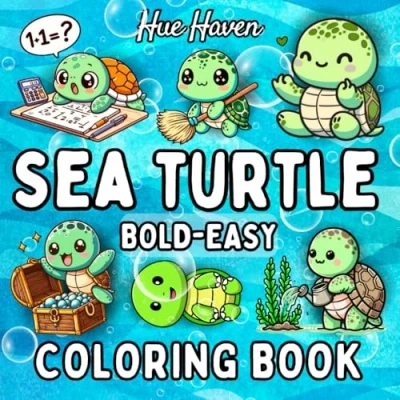 Sea Turtle: Bold and Easy Coloring Book for Kids Adults, Simple Stress Relief Cute Turtles Designs.