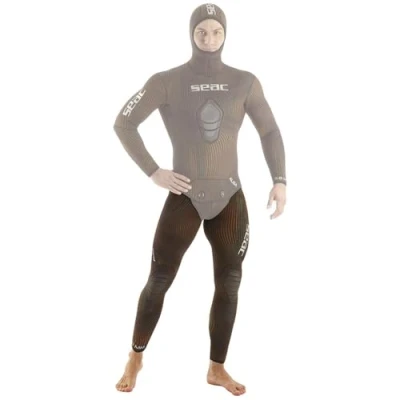 SEAC Alga wetsuit in two pieces in soft neoprene 3 or 5 mm glued and sewn blind stitching. Lycra outer lined fabric. Split open cell interior. Equipped with reinforcements in the sternal area and in the knees with PU-Print applications Equipped with Aquastop system limits water from entering near the face, wrists and ankles. Lycra reinforcement ensures better durability Ideal for freediving and spearfishing High waisted jacket and trousers are sold separately Made with the unique SEAC camouflage effect for better camouflage with the marine environment, especially where there is dense vegetation.