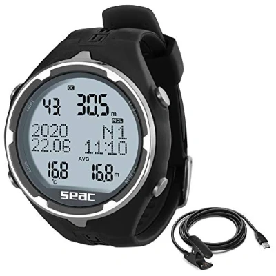 Seac Action, Dive Computer with Scuba and Freediving Mode, Logbook, Planner, Safety Alarms, black + usb