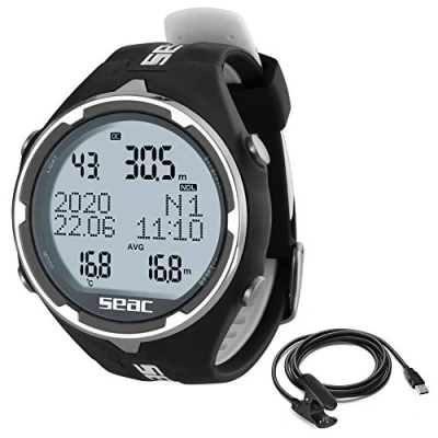 Seac Action, Dive Computer with Scuba and Freediving Mode, Logbook, Planner, Safety Alarms, black/white + usb