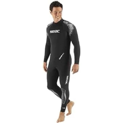 One-piece diving wetsuit Constructed using UltraStretch 5 mm neoprene. Easy to put on and take off, thanks to the durable ultrastretch neoprean and vertical rear zip. Freedom of movement and extreme comfort, thanks to super elastic inserts at the forearms, calves and armpits. Durable, high-quality fabric, thanks to polyurethane abrasion-resistant inserts at the shoulders and knees. The Acquastop system, with Smooth Skin neoprene seals, prevents water infiltration at the wrists, ankles and neck. Available in both men's and women's Styles, SEAC Cover adapts to all body shapes, guaranteeing an excellent fit.