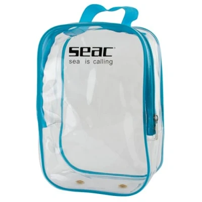 Transparent snorkel mask bag with practical carry handle 3-sided zipper for convenient storage after use Equipped with a handle, you can carry your full face snorkel mask wherever you go Internal measurements xy SEAC quality product, company in the diving industry since 1971