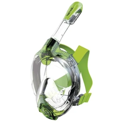 NEW GENERATION | The Seac Libera represents the evolution of full face snorkelling masks encompassing all the technical features to make the snorkeling experience unforgettable. A full-face panoramic mask that combines the highest levels of safety, ease of use and style SAFETY FIRST OF ALL | Like all Seac full face snorkelling masks the Libera is tested in the laboratory with Ansti machines and dedicated equipment to measure breathing performance and control CO2 levels. The Seac Full Face masks are the best in the category with a totally natural and effortless breathing quality, and you do not have to worry about any build up of CO2 values ,as the Libera always remains far lower than the recommended safety limits. EASY TO USE | The Seac Libera has a perfect fit thanks to the adjustable silicone straps both in the upper and the lower part of the Head. The quick-release buckles on both sides of the mask allow you to remove Seac Libera with just one hand. A STYLE EYE | The Seac Libera is available in 3 sizes depending on the distance between nose and chin; but the real novelty is the small size of the XS-S body shell that lightens the mask, improves comfort and makes it more pleasant on small faces. The colors of Seac Libera are exciting and suitable for those who never give up style, even on the beach! Seac QUALITY | The Seac Libera contains all the most popular features of the Seac full face mask: wide panoramic anti-fog screen, patented separate channel breathing system, dry top snorkel that prevents the entry of water, purge valves, high quality soft hypoallergenic silicone.