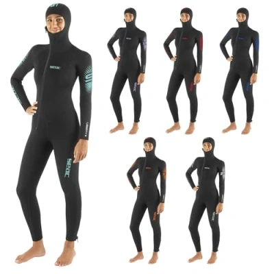 SEAC Liberty Long Lady One Piece Women’s Wetsuit 5 mm with Integrated Hood Durable Neoprene Supratex Reinforcements on Knees, Shoulders and Back Front Ankle Zip Colour Coded Sizes