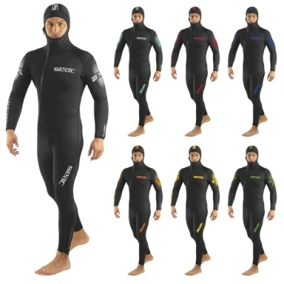 SEAC Liberty Long Man One Piece Men’s Wetsuit 5 mm with Integrated Hood Durable Neoprene Supratex Reinforcements on Knees, Shoulders and Back Front Ankle Zip Colour Coded Sizes