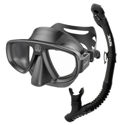 THE MUST-HAVE FOR YOUR UNDERWATER ADVENTURES : SEAC Set Bis Extreme Dry is the set in pure hypoallergenic silicone to always have with you for your diving and snorkeling sessions EXTREME 50 GRADUATED DOUBLE GLASS MASK: Comfortable and versatile, this double-glass mask has a soft skirt and an adjustable strap in high-quality silicone, to ensure maximum comfort on every face; the two 3mm tempered glass lenses can be replaced with prescription lenses for myopia and are sold separately SNORKEL REVERSE DRY WITH DRY TOP SYSTEM; sEAC Reverse Dry is the snorkel for your dives: comfortable and easy to adjust thanks to the practical clip, it has a mouthpiece that can be oriented both to the right and left, according to your needs; the Dry Top system prevents accidental entry of water even in the event of immersion; the purge valve lets any excess water escape from below INCLUDED : SEAC Extreme 50 mask, SEAC Reverse Dry snorkel and convenient 30x51.5 cm bag to easily transport your set; prescription lenses are available and sold separately
