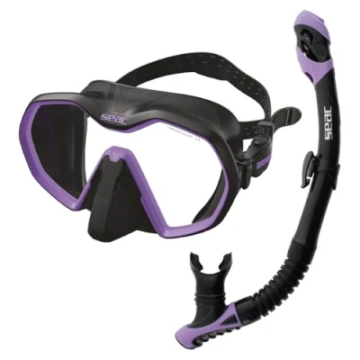 A MUST HAVE for your dives: this set is composed of the single-glass mask SEAC Icona and the snorkel SEAC Reverse Dry, with System Dry Top and Purge Valve. The best you can get for your dives! SINGLE-GLASS MASK 100% MADE IN ITALY: SEAC Icona is 100% Manfactured in Italy mask and made with Frameless technology. The ultra-resistant, 4 mm thick tempered glass is encased in 2 types of silicone that is overmolded for a facial Seal that fits perfectly on every face. The silIcone inside the face has an opaque finish to eliminate any reflection on the lense. SNORKEL WITH DRY TOP SYSTEM AND PURGE VALVE: Reverse Dry is the snorkel with silIcone mouthpiece adjustable on for both sides. Thanks to the Dry Top system, it prevents accidental water from entering the upper part. It has a corrugated section to avoid hitting the second stage of the regulator during diving with cylinders. The purge valve under the mouthpeice allows any excess water to escape from below. AVAILABLE IN A WIDE RANGE OF EYE-CATCHING COLOURS to match your gear perfectly.