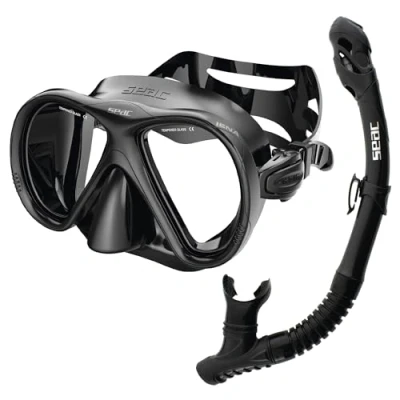 SEAC Set Bis Iena Dry Mask and Snorkel with Double Lens Silicone Top Purge Valve For Scuba Diving Snorkelling