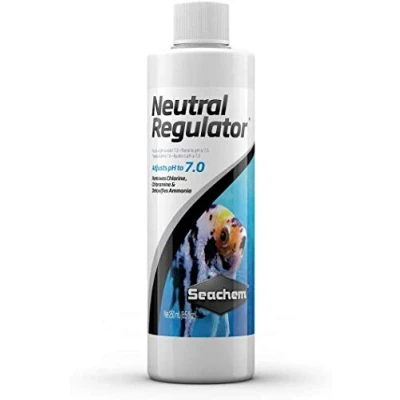 Seachem Neutral Regulator- Neutralizes pH Levels for Freshwater Aquariums NEUTRALIZES PH: Neutral Regulator adjusts pH to neutral (pH 7.0) from either a low or high pH and maintains it there SOFTENS WATER: Seachem’s Neutral Regulator softens water by precipitating calcium and magnesium while removing any chlorine, chloramine, and detoxifying ammonia OPTIMAL PERFORMANCE: To lower pH below 7.0 use the Neutral Regulator with Seachem’s Acid Regulator or Discus Buffer. To raise pH above 7.0 use with Seachem’s Alkaline Regulator TANK USE: Use 5 g (1 level teaspoon) for every 40–80 L (10–20 US gallons) once or twice a month (or as necessary to maintain a pH of 7.0.) Neutral Regulator may be initially used daily in cases of high alkalinity until 7.0 is established