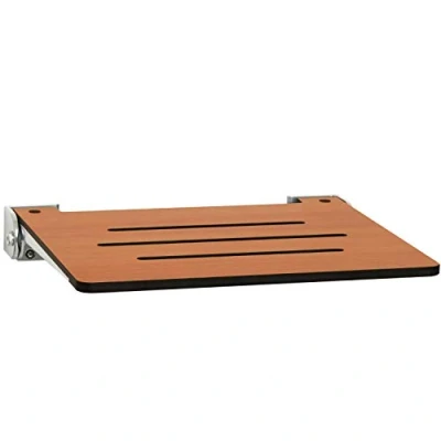 DIMENSIONS: This SlimLine shower seat has dimensions of 18.125” L x 15.86" W x 2.5” H with 16" mounting centers in a phenolic teak finish with a silver aluminum frame, delivering a warm and tranquil ambiance that elevates your bathroom experience while ensuring safety; mounting hardware is included WEIGHT CAPACITY: Our wall-mount folding shower seat satisfies the minimum ADA weight capacity requirement of 250 pounds and meets all Americans with Disabilities Act (ADA) code requirements when properly installed EASY USE: The seat bears a 16" mounting center for easy and damage-free installation and requires minimal assembly; it features three standard cut-out slots for optimal water drainage during use, and can be lifted using less than 5 pounds of force, making it the perfect aid for limited mobility MAXIMIZE SPACE: The sleek and compact folding shower seat provides secure support in the shower and easily folds up to an elegant slim profile within 3" against the wall when not in use, allowing for full use of shower space DURABLE: Fabricated in the USA using a sturdy aluminum frame and durable water-resistant 1/2" thick one-piece phenolic material, the seat is easy to clean and has a comfortably smooth surface for dependable long-lasting use