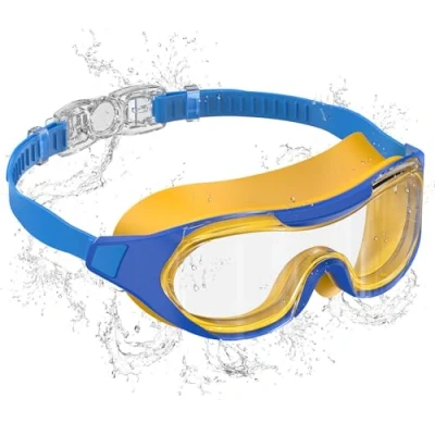 【PANORAMIC VIEW】 Our kids’ swim goggles feature a single curved lens that offers an ultra-wide 180° underwater field of view. This enhances spatial awareness, reduces unfamiliarity, and boosts children’s safety in the water. With high light transmission and a frameless optical lens, kids can more easily adapt to aquatic environments—building water confidence. 【NO-BRIDGE COMFORT – ONE-PIECE DESIGN】Unlike traditional kids’ goggles, our one-piece design uses soft silicone edges with no nose bridge. It adapts to children’s facial contours without pressure, slipping, or discomfort—even during long wear. Ideal for swim lessons and water play, prioritizing all-day comfort and support. 【LONG-LASTING ANTI-FOG + UV PROTECTION】 Equipped with multiple interior anti-fog coatings, these high-definition kids’ swim goggles ensure long-lasting underwater clarity. The outer UV-blocking layer reliably shields children’s eyes from harmful rays in both indoor and outdoor pools—giving peace of mind to parents and comfort to kids. 【SKIN-FRIENDLY SILICONE SEAL】These kids’diving goggles feature a wide, soft sealing ring made of premium liquid silicone. The expanded surface area evenly distributes pressure, minimizing marks and preventing fatigue—perfect for energetic, active children. 【KID-FRIENDLY QUICK-RELEASE CLASP】Made with ultra-soft silicone and designed specifically for kids ages 3–14, these goggles include a quick-release system that won’t snag hair. With just one strap adjustment, children can independently and securely wear their goggles—promoting swimming independence and reducing parent effort.