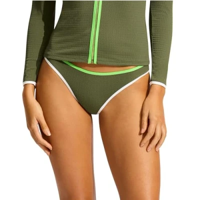 DISCOVER MORE- Click the SEAFOLLY link above to shop our full full collection of swimsuits, bikinis, beachwear and girls swimwear. Search Amazon for "Seafolly Beach Bound" to view the collection. ABOUT SEAFOLLY - Seafolly is Australia’s most loved iconic swimwear brand. We embody the spirit of the Australian beach and its unique lifestyle, inspiring confidence through our eternal optimism and unwavering commitment to empowering women to feel confident at the beach. We take great care to create swimsuits, bikinis and beachwear for all women, using what is true to our history, our product, our people, and our way of living. FIT - At SEAFOLLY we believe fit a feeling not a size. All our swimwear is designed in Australia. We fit every single piece on real women on a multitude of body shapes. We thoroughly test our fabrics to ensure they will last without stretching, sagging or fading over time. All our tops and bottoms are made to love and last. With design details that ensure a superior fit, we inspire confidence when it matters most. STYLE FEATURES – Low Rise Pant, Regular Pant Coverage, Regular Legline To Flatter The Leg and Contrast Bind ECO FRIENDLY FABRICS - Enjoy sustainable style in our latest collection, featuring pieces made from recycled materials. Our eco-friendly fibers not only reduce the need for new resources like petroleum but also help to minimize greenhouse gas emissions. Opt for sustainable swim and join us as wecontinue to protect our beaches and oceans.